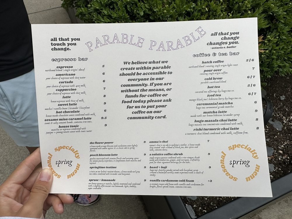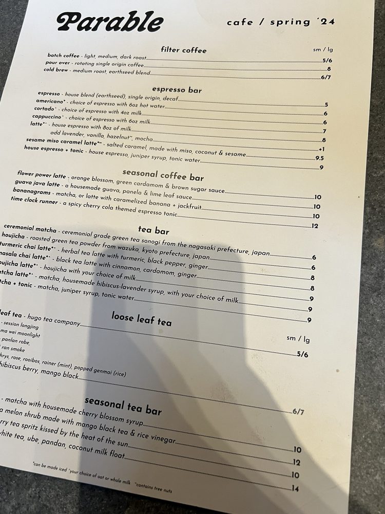 Parable Cafe is a unique blend of a wine bar, cafe, and cocktail bar located at 149 S High St in Columbus, OH. The cafe offers a variety of drinks, including Espresso House espresso, sweet lattes, filter coffee, and tea options such as matcha and chai lattes. The ambiance is trendy and hipster, with indoor and outdoor seating options. Customers praise the delicious pastries, especially the pistachio croissant, orange scone, and pull-apart bread. The staff is friendly and accommodating, creating a welcoming atmosphere for guests. While some find the prices a bit high, the quality of the food and drinks justifies the cost. Parable Cafe is a must-visit for anyone looking for a cozy spot to enjoy great coffee and pastries in Columbus.